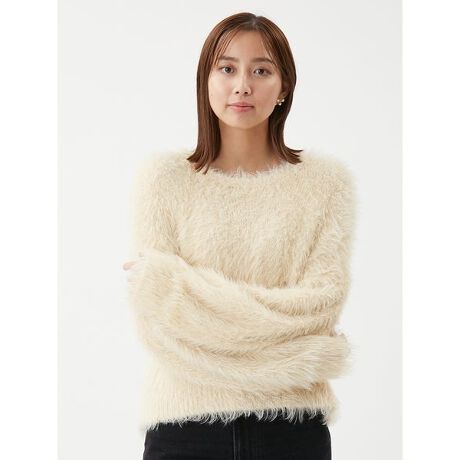 ゆったりと着るだけで、こなれた印象が作れてサマになる、華やかなシャギーニットです。
