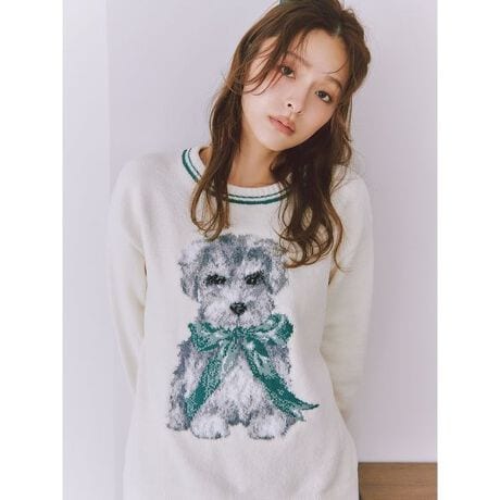 ふっくらとした優しい着心地のニットに、新木優子の愛犬でもあるシュナウザーのジャガードを入れたスペシャルなプルオーバー。