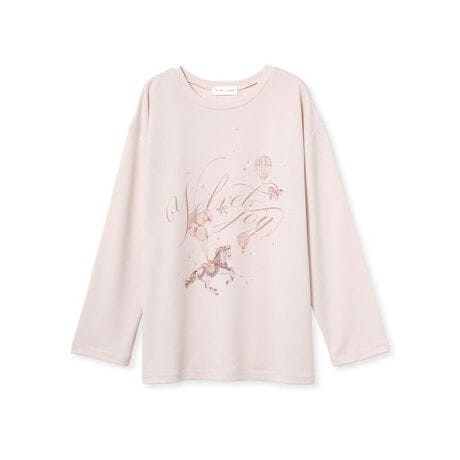 カルーセルや気球、バルーンなどのモチーフと、流れるようなロゴデザインを組み合わせたロングTシャツです。