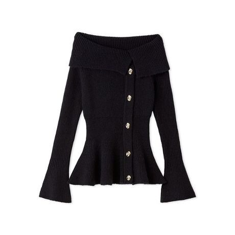 存在感のあるアシンメトリな襟元とウエストシェイプが目をひくペプラムカーディガンがお目見え。しっかりとした編み地のリブニットが程よく肉感を隠しながらも身体に寄り添いカーヴィーなラインを描き、美シルエットへと導きます。ワイドな襟元が顔まわりを華やかに。前立てには高級感のある艶めきメタルボタンを配置し、エレガントに仕上げました。アクセサリー無しでも華やかにキマります。ヒップにかかる丈感で、タイトなスカートやワイドパンツと好相性。春カラーを取り入れて、爽やかな仕上がりです。