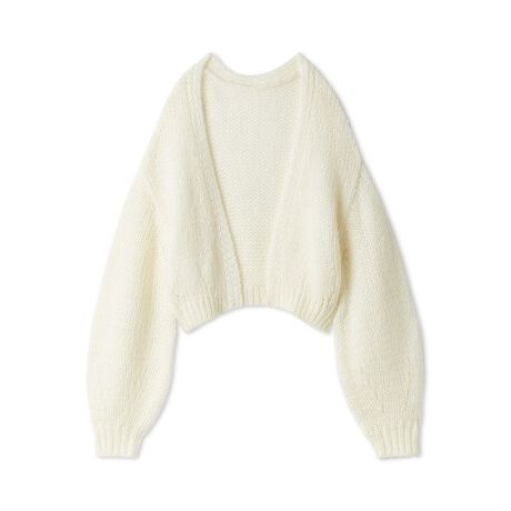 モヘヤウール混の太めの糸をざっくりとローゲージで編んだ、リラクシーで温かみのあるショートカーディガンが到着。袖口は丸みを出し、フェミニンに仕上げました。ゆったりとしたシルエットで、シフォンワンピースの上からゆるっと肩を抜いて羽織れます。ブラウスレイヤードフリルワンピース(SWFO261008)と同色でお作りしており、セットでのご着用もおすすめ。