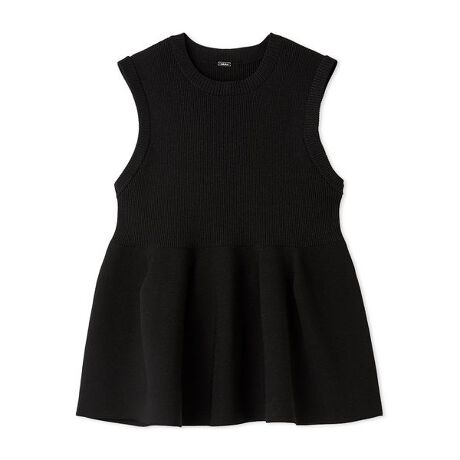 ペプラムの立体的なフォルムにこだわった、アンサンブルにも対応するノースリーブニットトップスです。