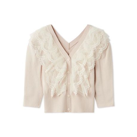SNIDEL定番人気のシアー感のあるチュールと繊細なスカラップ調のレースフリルをふんだんに挟み込んだニットプルオーバーが今季も登場。襟ぐりには、華奢なレースをふんだんに取り入れて、デコルテラインを美しく華やかに演出します。前後V開きで抜け感を加えたコンパクトなシルエットで、裾は切り替えを入れてすっきりとさせ、ハイウエストボトムやボリュームスカートともバランスが取りやすいデザインです。チュールにはギャザーを入れず、レースはギャザーを入れてフリルに立体感が出るよう、エレガントに仕上げました。