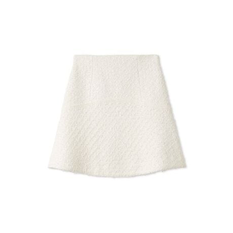 ふわふわキラキラとした華やかなオリジナルファンシーヤーンでお作りした清楚なツイードミニスカートが届きました。春気分を先取りできる爽やかなカラーが魅力のアイテムです。ウエスト周りはすっきりとした少しハイウエストで、裾は今季らしいフレアの切り替えを入れてクラシカルに仕上げました。横にブレードテープをたたいてさりげないアクセントをプラス。Tシャツ、ニットからブラウスまで幅広く合わせられるミニスカートです。ツイードジャケット(SWFJ261033)と同素材を使用しており、セットアップでのご着用もおすすめです。サイドのファスナーで着脱いただけます。裏地付きです。