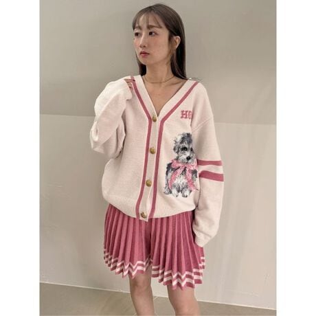 ふっくらとした優しい着心地のニットに、新木優子の愛犬でもあるシュナウザーのジャガードを入れたスペシャルなカーディガン。
