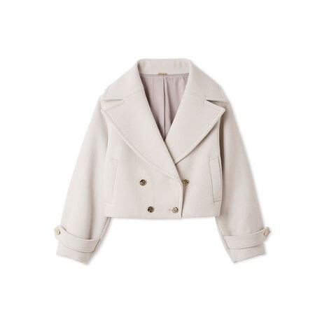 クラシカルなPコートを今季らしいショート丈でスタイリッシュにお作りしたショートPコートが到着しました。顔周りを華やかに演出するワイドなラペルに、艶感のあるニュアンスボタンが上品な仕上がりです。ややワイドなボックスシルエットで、衿をぬいて着用しているようなシルエットが着こなしの鮮度をアップします。ワンピースやハイウエストのボトムともバランスよく合わせられるショート丈で、スタイルアップ効果も抜群。同素材でお作りしている構築ミニスカート(SWFS261012)とセットアップでのご着用もおすすめです。裏地付き。サイドにポケットも付いています。