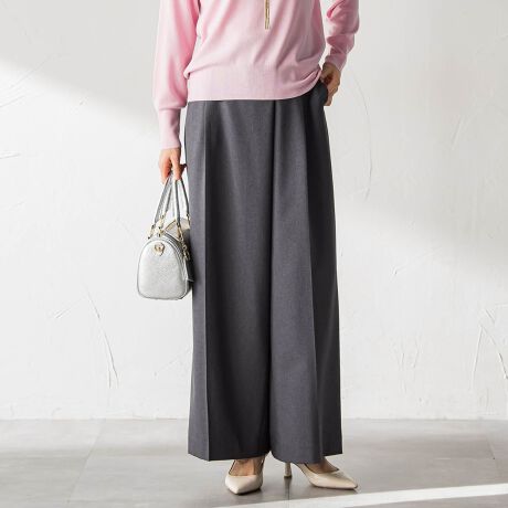 シンプルなトップス合わせでもバランスよくまとまる、着回し力の高いワイドパンツです。
