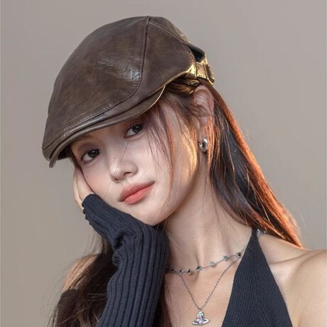 ほんのりツヤを感じるレザー調素材が上品なキャスケット。