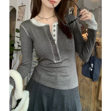 配色ヘンリーシャツハーフボタンカットソー