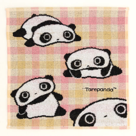 [型番:0011640008]コロンと可愛らしい、たれぱんだのタオルハンカチ。気分を明るくしてくれるチェック柄に、癒しポーズのたれぱんだが癒しをくれる一枚です。