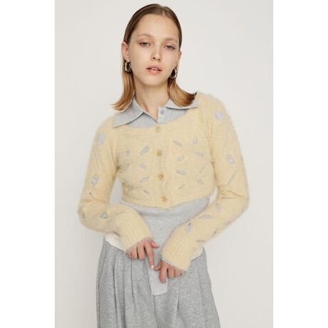 【KNIT BODY SUITS】■POINT:異素材のレイヤードデザインが目を引くニットトップス。着用するだけで、周りと差をつけるSLYらしい遊び心溢れるアイテムです。■DETAIL:ふんわりとしたシャギーのクロップドカーディガンは、オリジナルのスリット柄を施し抜け感のあるデザインに仕上げました。ボディースーツはリブニットを使用し、カジュアルな印象で仕上げています。シャギーとリブの異素材が程よいバランスのとれたシーズンムードを高めるアイテムです。杢グレーのボディースーツにライトイエローのカーディガンが映えるライトイエローと、ブラックのボディースーツにグレーのカーディガンがモードな印象のグレーの2色展開です。■STYLING:1枚でレイヤードスタイルが完成するので、シンプルなボトムスと合わせるだけでこなれ感のあるスタイリングが完成します。別々でも使用していただけ、シャギークロップドカーディガンはお持ちのトップスとレイヤードしていただくのもおすすめです。単体でも様々なスタイリングを楽しんでいただけます。■FABRIC/MATERIAL:ボディースーツは天竺のリブニットを使用。クロップドカーディガンはナイロンアクリルシャギーニットを使用。■透け感:一部あり■光沢感:なし■伸縮性:一部あり■裏 地:なし・洗濯機表示の場合はネットに入れて弱水流で洗って下さい。・手洗いの場合はもみ洗いを避けて軽く押し洗いして下さい。・洗濯後は、速やかに形を整え干して下さい。・丈の長い製品、袖など伸びやすい箇所はハンガーで支えたり、平干しをすることで型崩れを防止できます。[注意事項]※画像の商品はサンプルです。実際の商品と仕様、加工が若干異なる場合があります。※画像の商品は光の照射や角度、お使いのモニター環境により、実物と色味が異なる場合がございます。※着用、お取り扱いの際は、アテンションタグをご確認ください。※一部予約商品につきましては生産上の都合によりお届け予定日や店頭発売と前後する場合もございます。※追加生産商品は、一部の店舗、通販で販売中の場合がございます。予めご了承下さい。