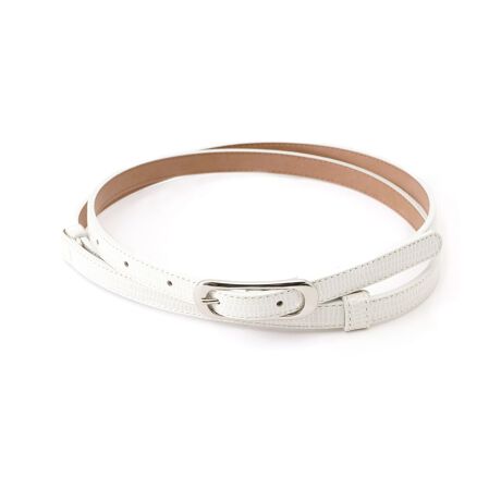 バックル付きの細いタイプのベルト。レリアンオリジナルデザインで、上品な雰囲気を演出します。ワンピースやブラウスにプラスして、ウエストラインを美しく引き立て、メリハリのあるシルエットを演出してください。