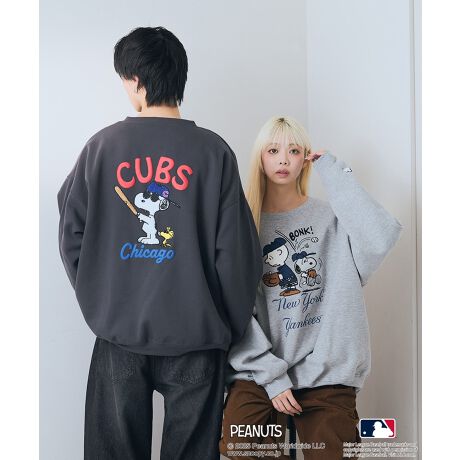今も昔も多くの人に愛されているPEANUTSと、メジャーリーグベースボール(MLB)とのコラボレーションアートを使用したオリジナルデザイントレーナーです。