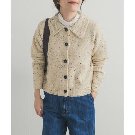 レトロ可愛いネップヤーン衿付きニットカーディガン