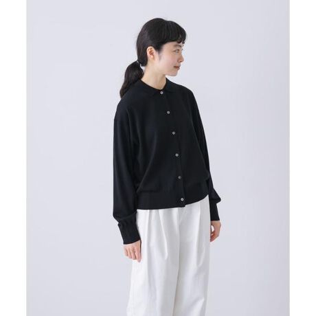 ほんのりとハンサムなムードをまとうニットカーディガン。襟のデザインがきちんとした雰囲気を後押ししています。ハイゲージに編立られたクリアな表面は高級感のある佇まい。程よくゆとりがあり肩が落ちるデザインなのでどこか女性らしいムードも兼ね備えています。スカート/パンツどちらも相性が良く、お仕事にも日常にもシーンを問わず活躍の予感。インナーにTシャツを合わせてラフなムードをまとわせるのもこなれ感が増しおすすめです。ウール特有のごわつきを感じにくく快適に着用いただけます。手洗いが可能なので気軽に着られるのも嬉しいポイント。