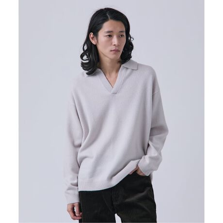 襟元をV字に開けたデザインが特徴のスキッパーネックニットです。