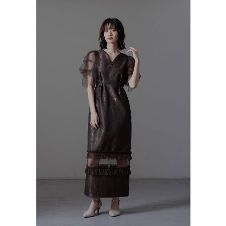 niana ニアナ 光沢のあるジャガード生地を纏ったクラシカルなオケージョンドレス。