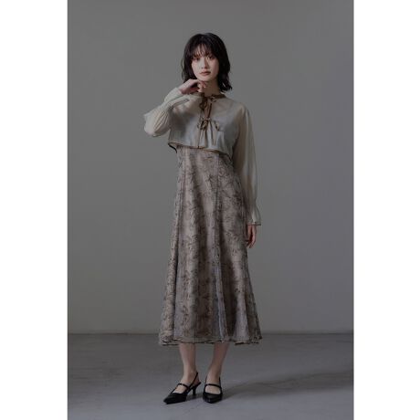 程よい透け感のチュールボレロは、キャンディスリーブで女性らしい印象に。
