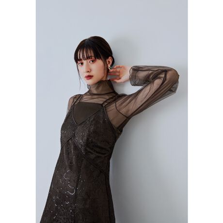透け感が美しいチュールを二枚重ねにしたシアートップス。