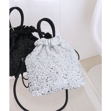 スパンコールが目を惹く巾着トートバッグ