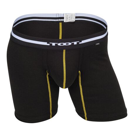 「3レイヤーコットン ロングボクサー」は、シンプルなデザインにカラーステッチをアクセントとして加え、高機能生地を贅沢に使用したロングボクサーです。生地の表面には起毛加工が施されたアクリルレーヨンを使用し、高級感のある質感を実現。裏面には肌に優しいコットンを使用し、それらでストレッチ性を高めるポリウレタンを挟み込んだ三層構造素材が採用され、快適で心地よい穿き心地です。保湿保温性能を備えた寒い季節におすすめの製品です。
