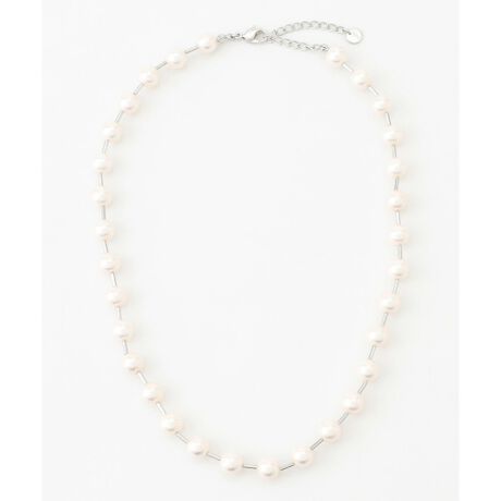 [型番:AS2VLS0002]■デザインパールとメタルパーツを交互にMIXさせたネックレスです。表面を何度も塗り重ねた貝パールを使用しており光沢があります。オケージョンシーンにもご使用頂けるアイテムです。※画像はサンプルを使用している為、実際にお届けする商品と仕様、加工、サイズが若干異なる場合がございます。予めご了承ください。※撮影環境の都合上、実際の商品と色味が異なって見える場合がございます。
