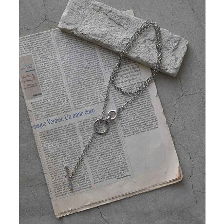 大ぶりのメタルマンテルがスタイリッシュなアクセントになるネックレス。