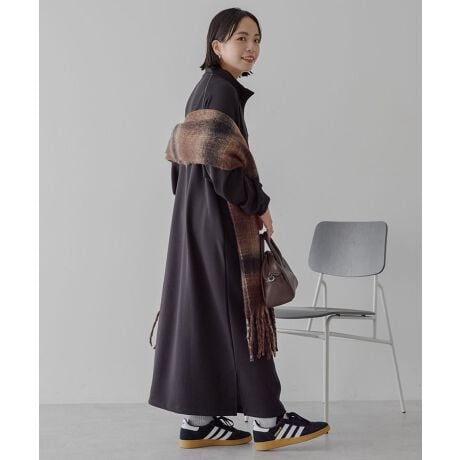 もっちりとした肌触りの良いポンチ素材で仕立てたワンピース。シンプルなデザインにスポーティーなアクセントをプラスし、1枚で旬なスタイリングが完成します。ボディラインを拾いにくいワイドシルエットですっきり華奢見えも叶う一枚。ベーシックで着回しやすく、デイリーに活躍するおすすめのアイテムです。透け感[なし]