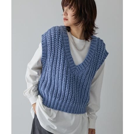 コンパクトなシルエットが今年らしいニットベスト。ローゲージのゆるっとした編み地で、秋冬スタイリングにこなれ感を演出します。顔周りをすっきりと見せてくれるVネックデザインもこだわりのポイント。デニムはもちろん、スカートやシンプルなワンピースとのレイヤードも楽しめる今季おすすめのアイテムです。透け感[あり]
