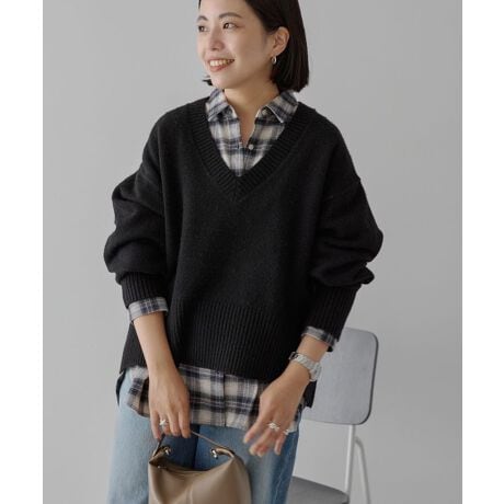 袖口・裾のワイドリブがエッジの効いたアクセントをプラスするプルオーバー。やや深めのVネックがすっきりとした顔まわりを演出します。ゆとりのあるサイズ感で着心地良く、前後差のあるヘムラインが気になる部分をカバーしてスタイルアップ効果にも期待。どんなボトムとも合わせやすく、デイリーに活躍するおすすめのアイテムです。透け感[なし]