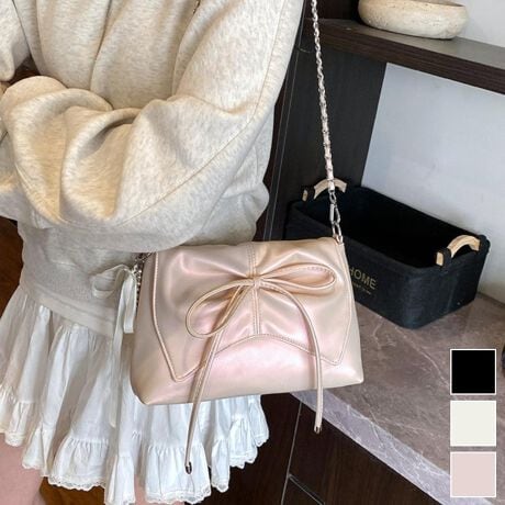 大きめのリボンディテールに細めのリボンをプラスしたアクセントがフェミニンモードにぴったりです。