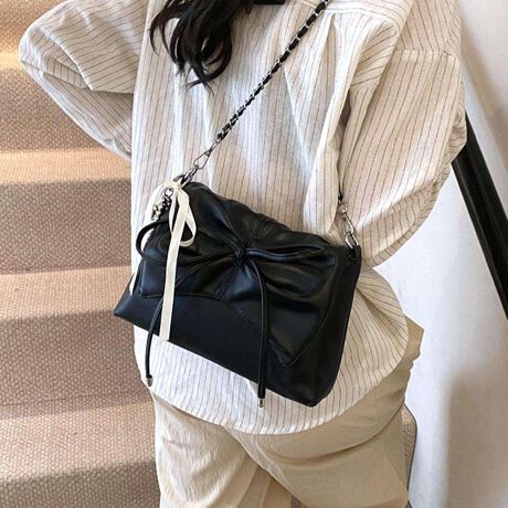 大きめのリボンディテールに細めのリボンをプラスしたアクセントがフェミニンモードにぴったりです。