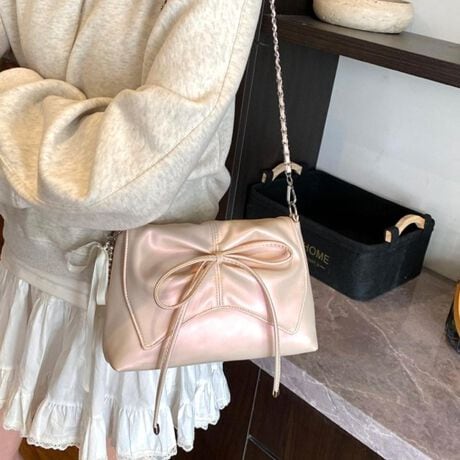 大きめのリボンディテールに細めのリボンをプラスしたアクセントがフェミニンモードにぴったりです。