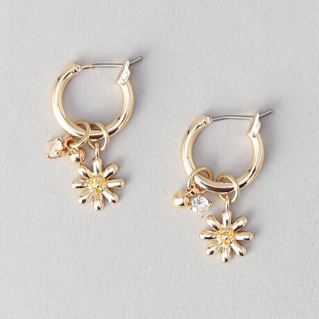 フープ部分にフラワーモチーフとキュービックジルコニアがきらめく、華やかなピアス。