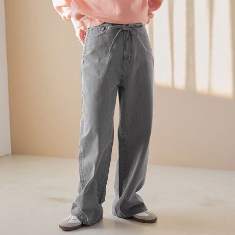 リボンがつくるさりげないメリハリ、デイリーに履きたいワイドデニム。