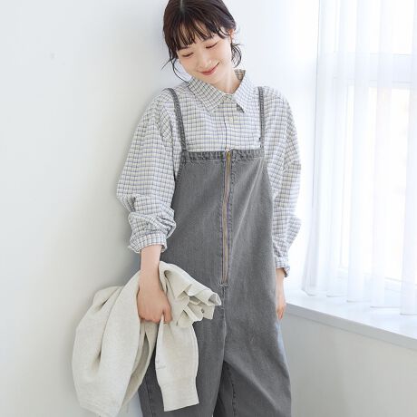 さっと着るだけで今っぽい。ジップが主役のデニムサロペット。