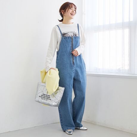 さっと着るだけで今っぽい。ジップが主役のデニムサロペット。