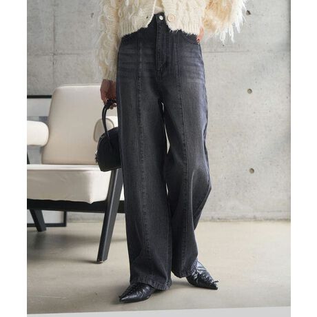 ストレートシルエットに施したセンターラインが脚をまっすぐに見せてくれ、ハイウエスト仕様でスタイルアップも叶う美脚見えワイドパンツです。