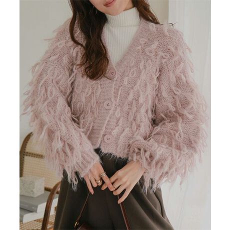 ふんわりとした柔らかな雰囲気が女性らしく見た目の温かさも引き立ててくれるフェザーカーディガンです。