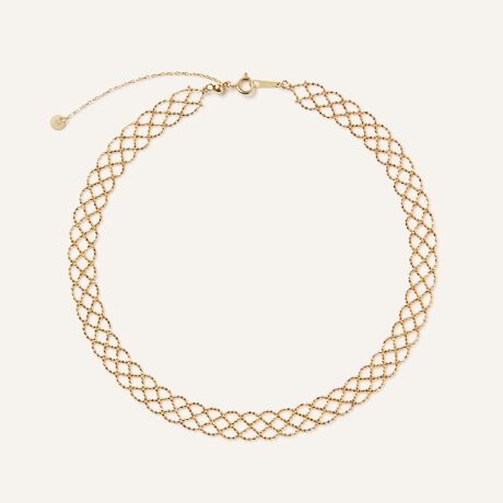 イエローゴールドの煌めきが首元に華やかさをプラス。