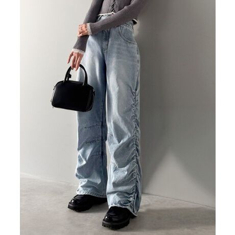 ボリューム感のあるワイドラインに、サイドのギャザーディテールが絶妙な立体感をプラス。