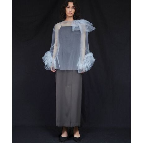 立体感とエアリーさを絶妙に両立させた、チュールフリルトップスとキャミワンピースのセットアイテム。