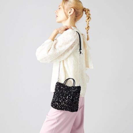 キラキラのスパンコールがポイントのミニトート。