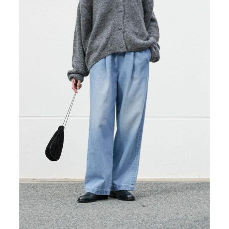 日々のコーデに頼もしくスタイリングに変化を与える1枚。ウエストのタックが立体感を生み、ヒップやもも周りに余裕がありながらもすっきりとしたシルエットに。野暮ったく見えない品のあるデニムです。シーズンを問わず気軽に着用できるのも嬉しいポイント。ニット・カットソー・ブラウスなどあらゆるトップスと好相性◎ワンピースとのレイヤードにも重宝します。両脇/ヒップにポケット付き。