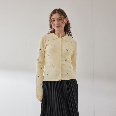 全面に小花柄の刺繍が施されて、グッドガール風の印象に。