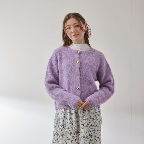 優しく包み込んでくれるような温もりを感じられるウール混のソフトシャギーニット起毛素材を使用したふんわりエアリーなカーディガンです。