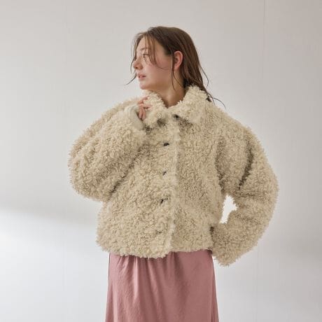 ふわっと包まれる立体感が可愛いフェイクファーブルゾンです。
