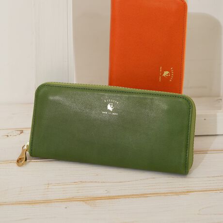 発色の鮮やかな国産牛革にキソラでは珍しいビスロンファスナーを合わせたカジュアルなシリーズ。