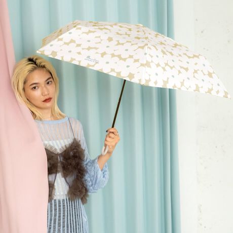 リズミカルにお花を配置したデザインの折りたたみ雨傘。