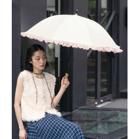 ふんわり重なるフリルが上品で華やかな印象の日傘